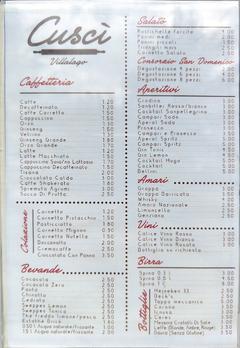 Cuscì - Villalago Menu